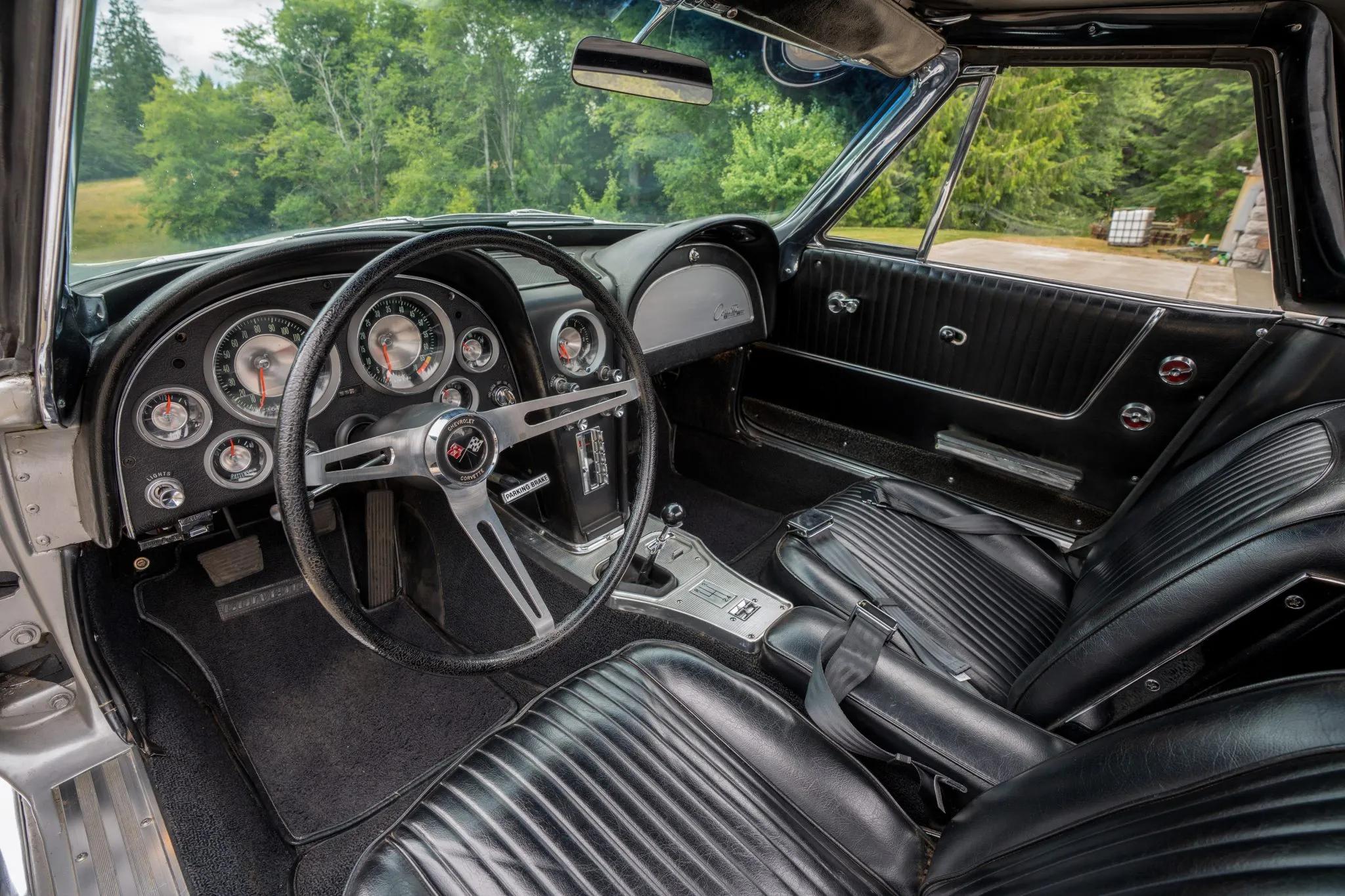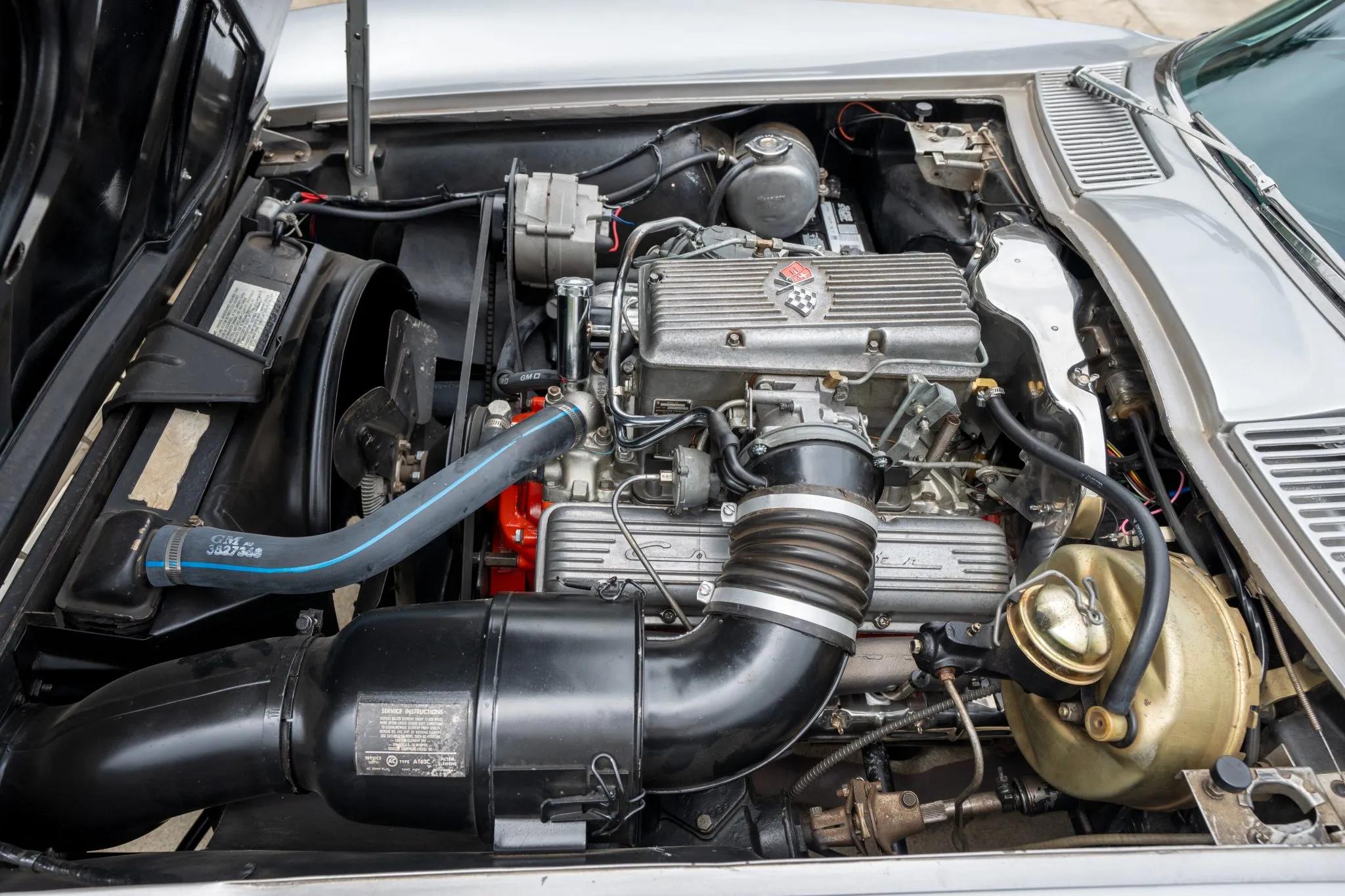 The 327ci L84 V8 is paired with a four-speed manual transmission and equipped with a Rochester mechanical fuel-injection system that was rebuilt in 2025.