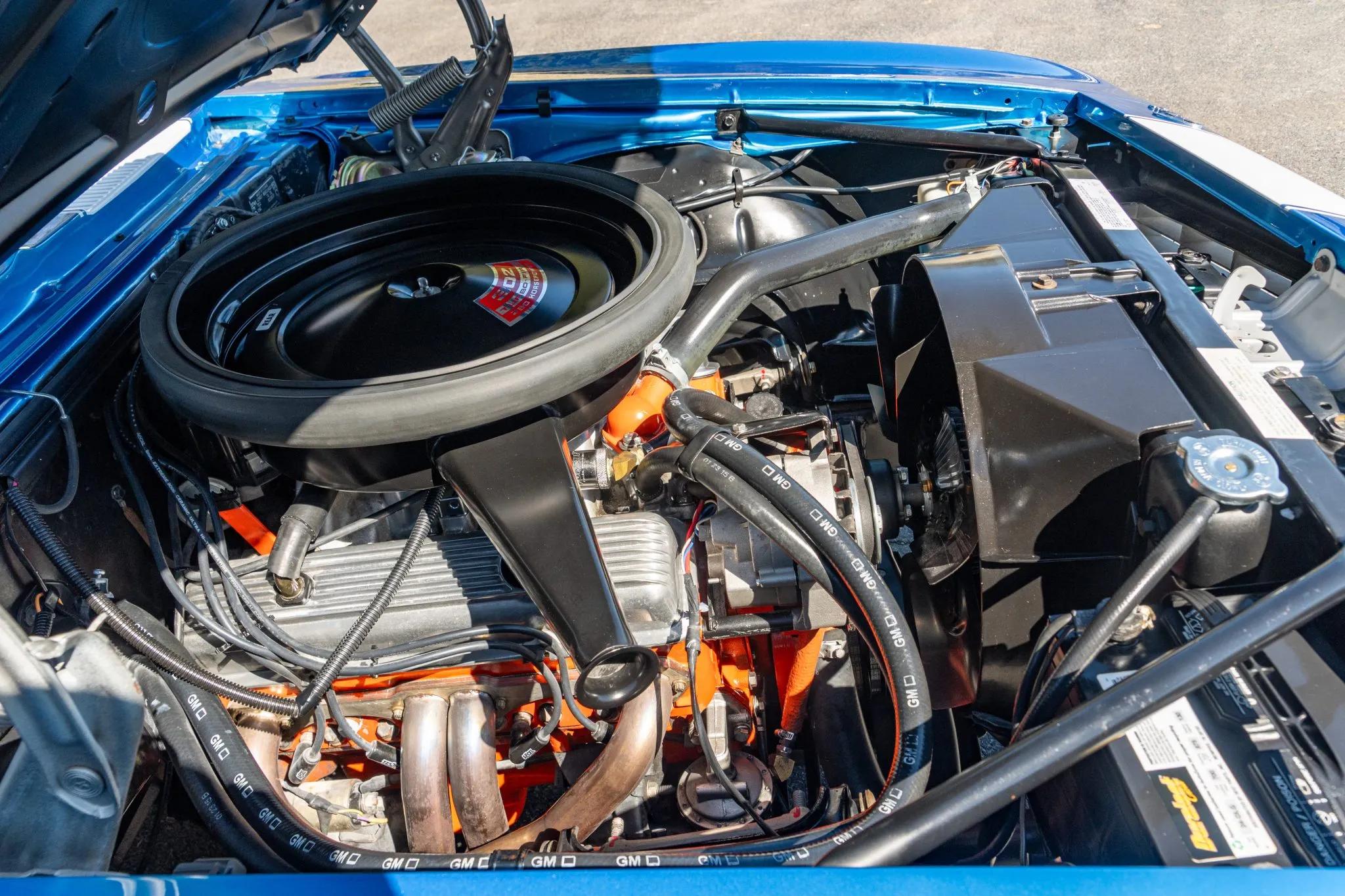 The 302ci Z/28 V8 was factory rated at 290 horsepower and is equipped with a cowl induction air cleaner assembly. Power is delivered to the rear wheels through a four-speed manual transmission and a limited-slip differential. Aftermarket headers feed into a dual exhaust system.