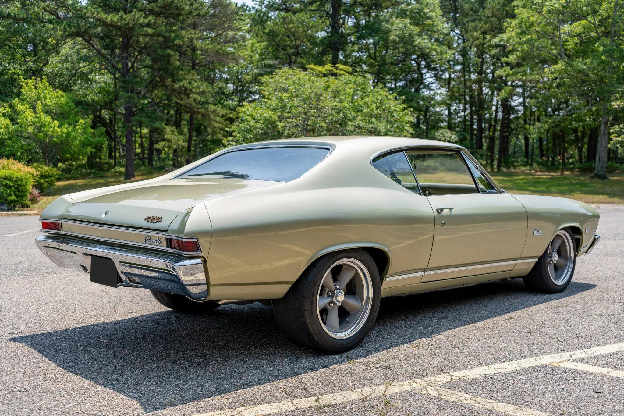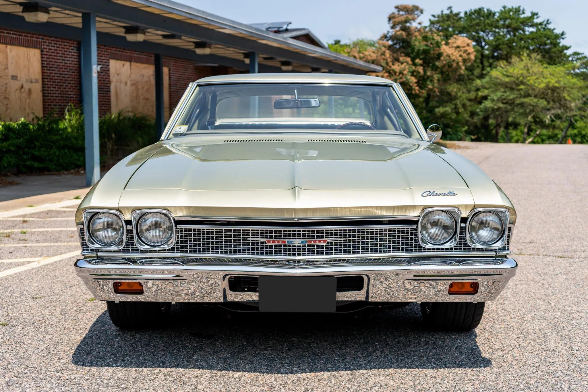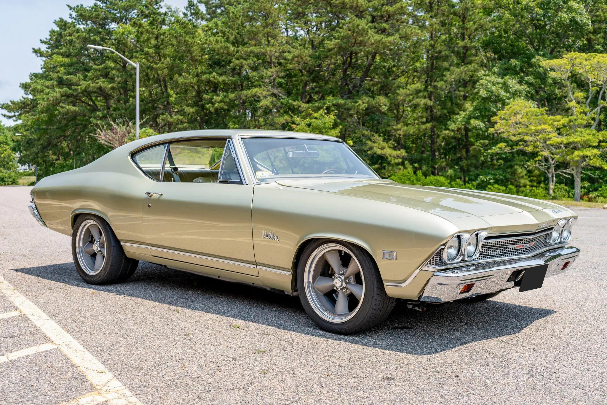 This 1968 Chevrolet Chevelle Malibu sport coupe has been modified and refurbished with a 5.3-liter V8, six-speed manual transmission, and Ford 9" rear end with 3.70:1 gears. The engine features a Summit Racing camshaft, FAST intake manifold, and Holley Sniper fuel injection. Headers feed a dual exhaust system with an X-pipe and MagnaFlow mufflers. Cooling is provided by a Griffin radiator, and additional components include a Holley oil pan, fuel tank, and fuel pump.