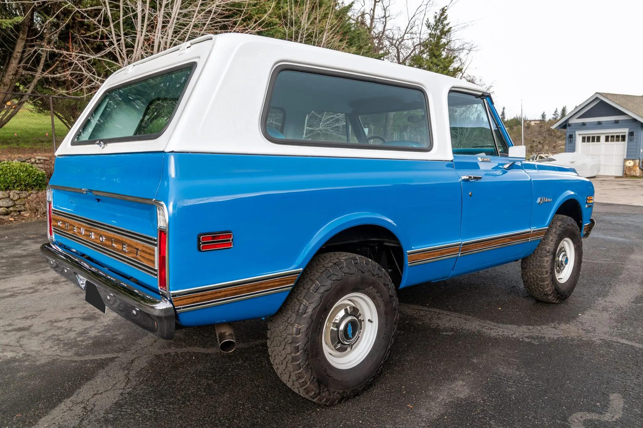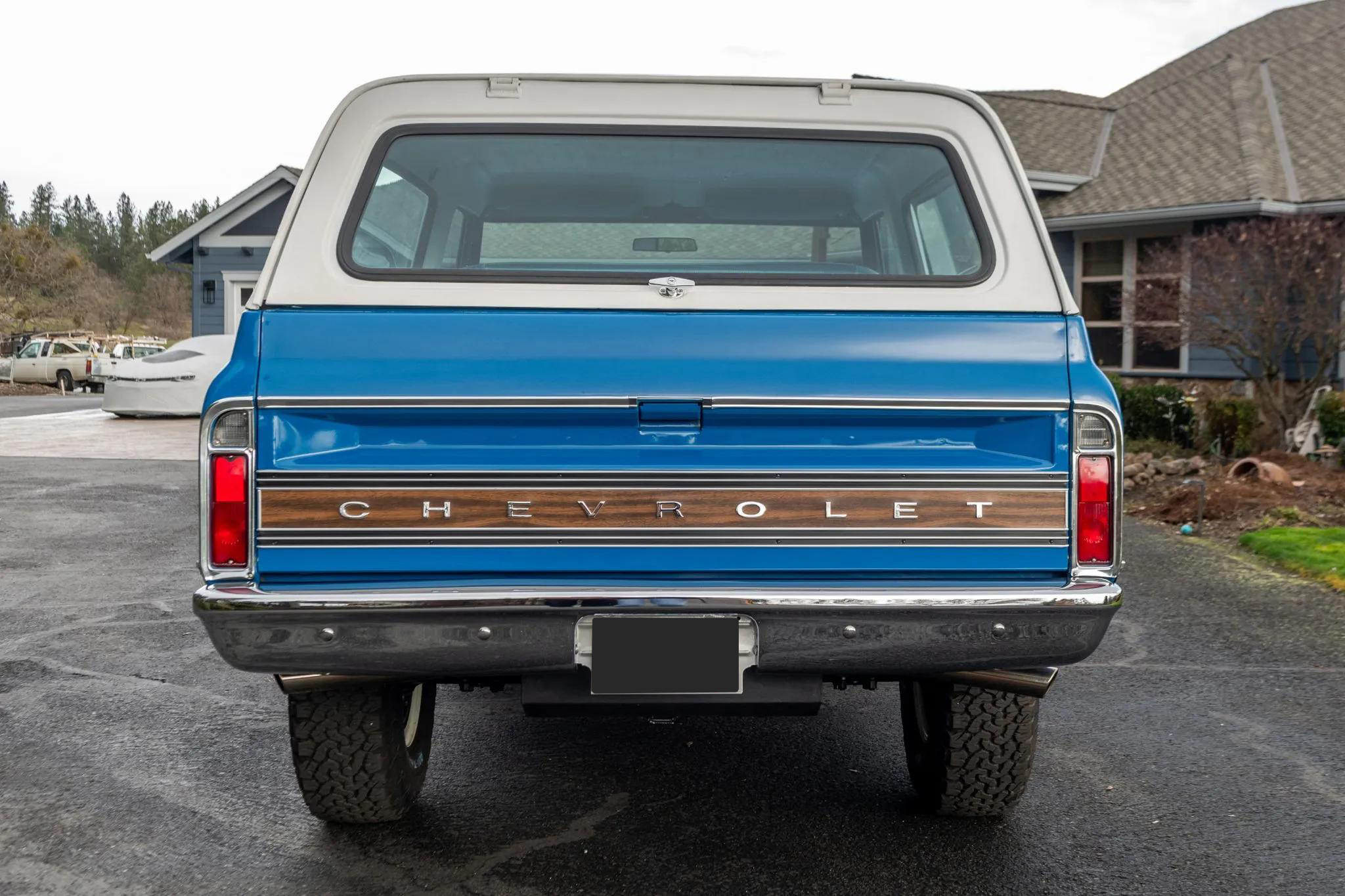 This 1972 Chevrolet K5 Blazer CST 4�4 is powered by a 350ci V8 paired with a three-speed automatic transmission and an NP205 dual-range transfer case. The truck is finished in Mariner Blue with a white removable hardtop and blue vinyl interior.