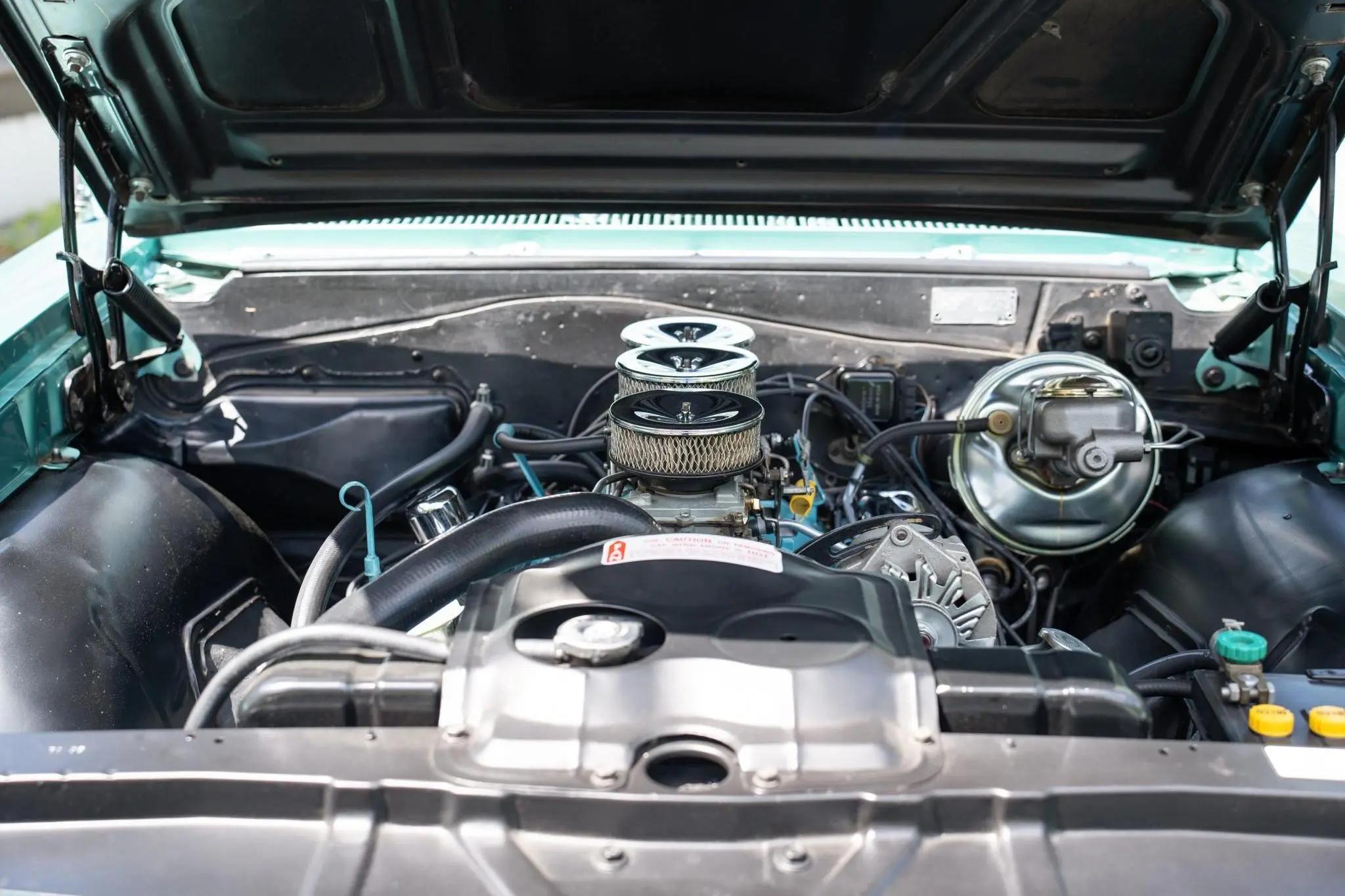 The 389ci V8 features a tri-power setup with an overhauled camshaft, lifters, and springs. Power is sent to the rear wheels through the M20 manual transmission and Safe-T-Track limited-slip differential. The exhaust consists of high-output manifolds feeding 2.5" stainless-steel piping with an X-pipe. The five-digit odometer shows 83k miles, approximately 20k added under current ownership.