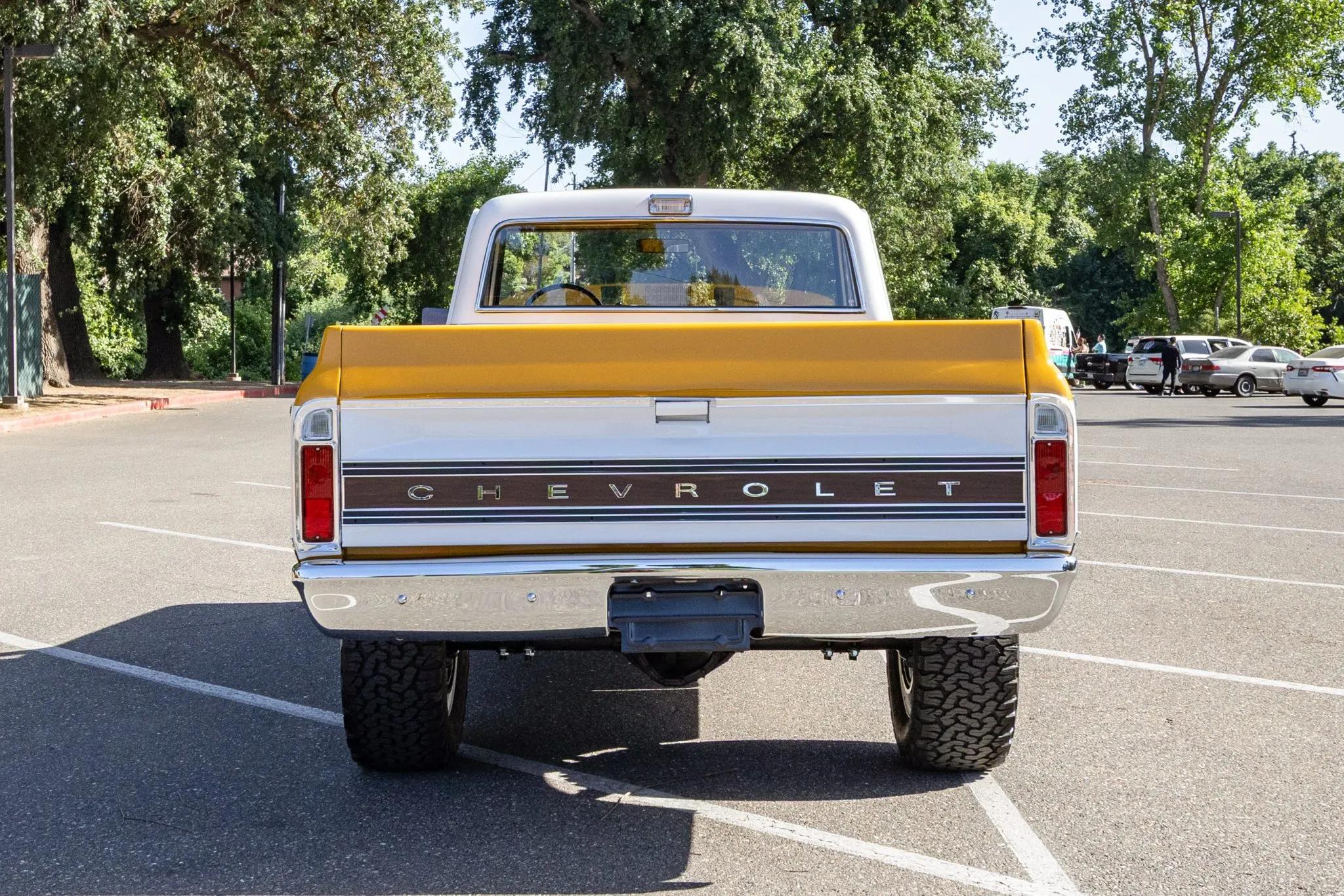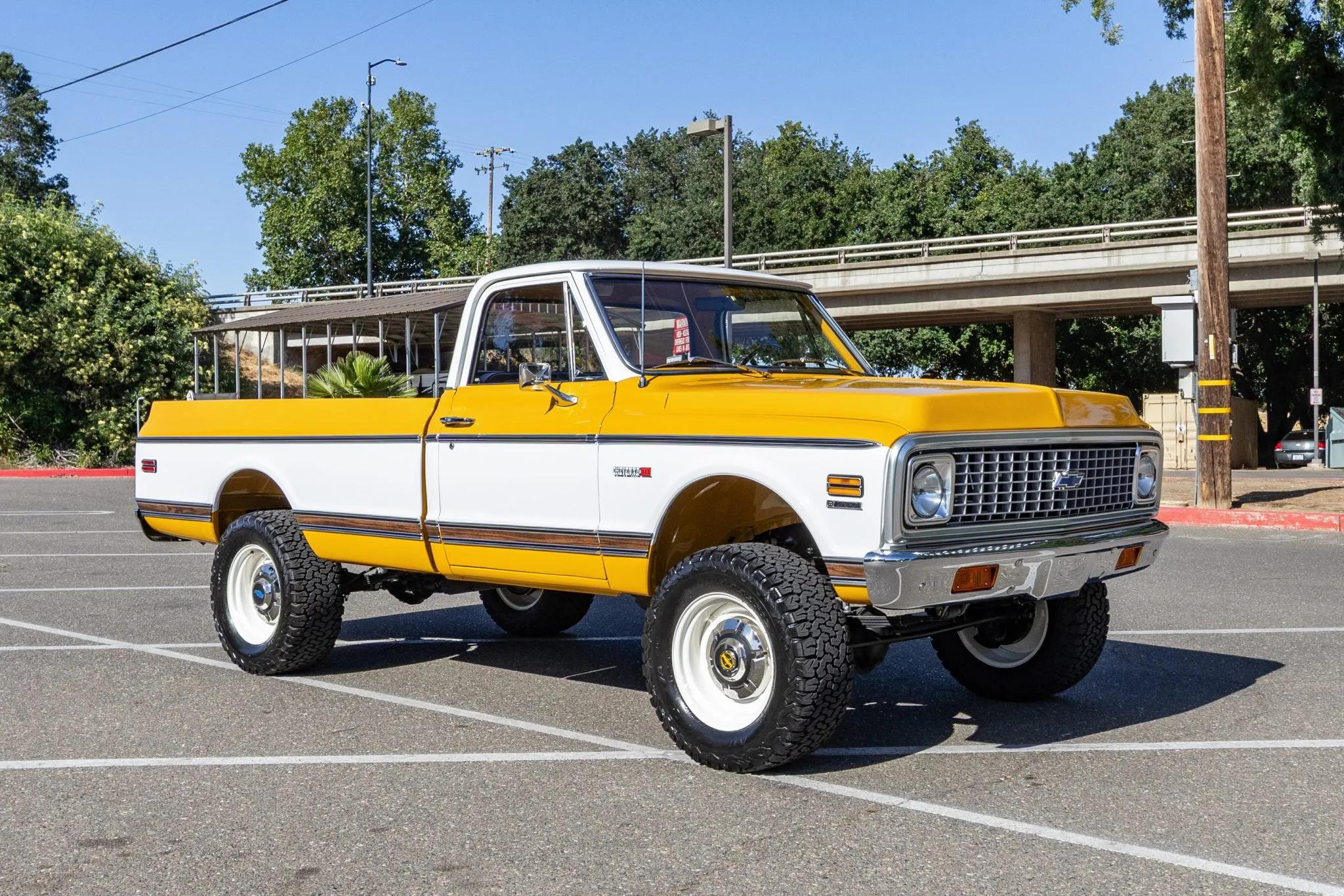 This 1972 Chevrolet K10 Cheyenne 4�4 pickup was refurbished following the seller's 2024 acquisition. It is powered by a 350ci V8 with an Edelbrock intake manifold, HEI distributor, and stainless steel long-tube headers, paired with a rebuilt three-speed Turbo Hydramatic automatic transmission and dual-range transfer case. Power is routed through a Positraction rear differential, and the exhaust system features Flowmaster mufflers.