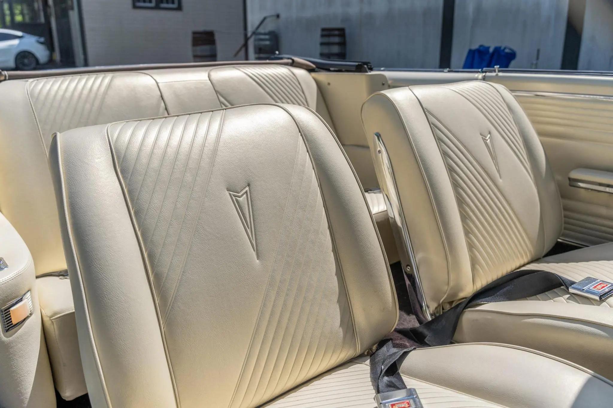 The 389ci V8 features a tri-power setup with an overhauled camshaft, lifters, and springs. Power is sent to the rear wheels through the M20 manual transmission and Safe-T-Track limited-slip differential. The exhaust consists of high-output manifolds feeding 2.5" stainless-steel piping with an X-pipe. The five-digit odometer shows 83k miles, approximately 20k added under current ownership.
