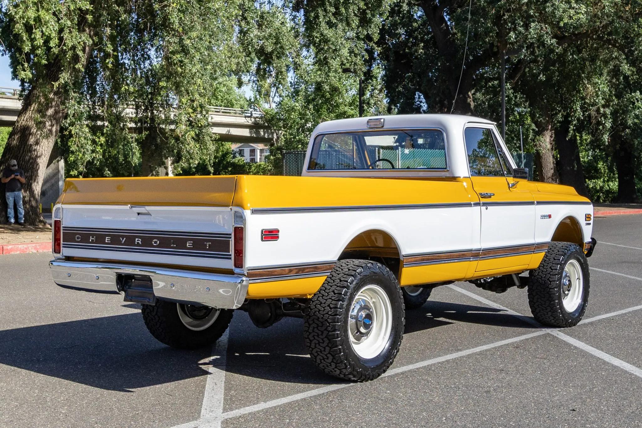 This 1972 Chevrolet K10 Cheyenne 4�4 pickup was refurbished following the seller's 2024 acquisition. It is powered by a 350ci V8 with an Edelbrock intake manifold, HEI distributor, and stainless steel long-tube headers, paired with a rebuilt three-speed Turbo Hydramatic automatic transmission and dual-range transfer case. Power is routed through a Positraction rear differential, and the exhaust system features Flowmaster mufflers.